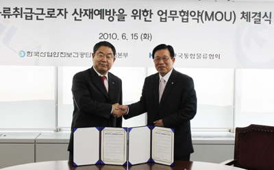 Çѱ¹ÅëÇÕ¹°·ùÇùȸ(ȸÀå ±èÁøÀÏ)´Â Çѱ¹»ê¾÷¾ÈÀüº¸°Ç°ø´Ü ¼¿ïÁö¿ªº»ºÎ(º»ºÎÀå ±è±¸Áß)¿Í Áö³ 6¿ù 15ÀÏ(È) ¿ÀÀü ´ëȸÀǽǿ¡¼ ¡®¹°·ùÃë±Þ±Ù·ÎÀÚ »êÀ翹¹æ ¾÷¹«Çù¾à(MOU)¡¯À» ü°áÇÏ¿´´Ù.