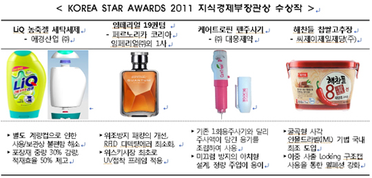 ¡®Çѱ¹±¹Á¦Æ÷Àå±âÀÚÀçÀü(KOREA PACK 2011)¡¯ ¿ÀÇÂÇà»ç¿Í µ¿½Ã °³ÃÖµÈ À̳¯ Çà»ç¿¡¼´Â KOREA STAR ÀϹݺκп¡ Áö½Ä°æÁ¦ºÎ Àå°ü»ó 4Á¡, Çѱ¹»ý»ê±â¼ú¿¬±¸¿øÀå»ó 8Á¡, Çѱ¹Æ÷Àå±â¼ú»çȸÀå»ó 10Á¡ÀÌ ¼ö»óÇϰí, À¯°øÀÚ ºÎºÐ¿¡´Â Áö½Ä°æÁ¦ºÎÀå°üÇ¥Àå 2ÀÎ, Çѱ¹»ý»ê±â¼ú¿¬±¸¿øÇ¥Àå 2ÀÎÀÌ ¼ö»óÀ» ÇÏ´Â µî Àü³âµµ ´ëºñ Áö½Ä°æÁ¦ºÎ Àå°ü»ó, ǥâÀÌ Áõ°¡µÇ¾ú´Ù.