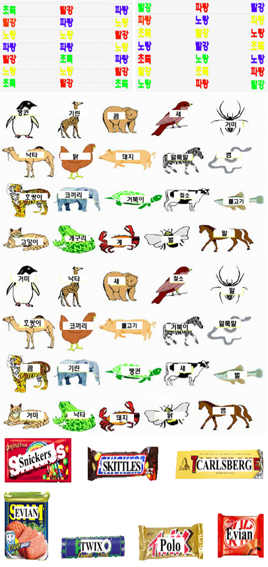 »ï»öµîÀÇ °æ¿ì, ³ì»öÀÇ È»ìÇ¥´Â È»ì ÇüÅÂ¿Í »ö±òÀÌ ÇÕÃÄÁ® ½ºÆ®·ì ÀÏÄ¡¼ºÈ¿°ú(stroop congruity effect)¸¦ ¸¸µé¾î³½´Ù. ÇüÅÂ¿Í »ö±òÀ» ÀνÄÇÏ´Â °¢°¢ÀÇ ½Ã°¢ÇÇÁú ºÎÀ§°¡ ½ºÀ§Ä¡·Î ½±°Ô ¿¬°áµÇ´Â °ÍÀÌ´Ù. ³ì»öµîÀº °ü½ÀÈµÈ ½ÅÈ£·Î¼ ¡®°¡½Ã¿À¡¯À̰í È»ìÇ¥´Â µ¿ÀÛ°ú ¹æÇâÀ» Áö½ÃÇÏ´Â ÀÚ¿¬±âÈ£·Î µÎ Á¤º¸°¡ ¼·Î º¸¿ÏµÇ¾î Á¤º¸Ã³¸®ÀÇ ÃËÁøÈ¿°ú°¡ »ý±â´Â °ÍÀÌ´Ù. ÇÏÁö¸¸ »¡°£»ö°ú È»ìÇ¥´Â ¼·Î ½ºÆ®·ì °£¼·È¿°ú(stroop interference effect)¸¦ ¸¸µç´Ù. ÁÖÀǸ¦ ±â¿ïÀÌÁö ¾ÊÀ¸·Á°í ÇÏ´Â ÀÚ±Ø(È»ìÇ¥)ÀÌ Ã³¸®ÇÏ·Á°í ÇÏ´Â Á¤º¸(»¡°£»ö)°¡ ¹æÇظ¦ ¹Þ´Â °ÍÀÌ´Ù.