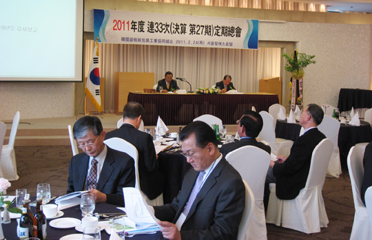 Çѱ¹°ñÆÇÁöÆ÷Àå°ø¾÷Çùµ¿Á¶ÇÕÀº Áö³ 2¿ù 24ÀÏ(¸ñ) ¼¿ïÆÈ·¹½ºÈ£ÅÚ¿¡¼ 50¿©¸íÀÇ ³»¿Ü ±ÍºóÀÌ Âü¼®ÇÑ °¡¿îµ¥ °á»ê 33Â÷ Á¤±âÃÑȸ¸¦ °³ÃÖÇÏ¿´´Ù. À̹ø ÃÑȸ¿¡¼´Â 10´ë ÀÌ»çÀå¿¡ Çö ÀÌ»çÀåÀÎ ¿ÀÁø¼ö ÀÌ»çÀåÀÇ ¿¬ÀÓ È®Á¤µÇ¾ú´Ù.
