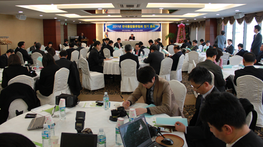 ÇÑÆí, À̹ø Á¤±âÃÑȸ¿¡´Â ±èÁøÀÏ ÃÊ´ëȸÀåÀ» ºñ·ÔÇØ ȸ¿ø»ç CEO¿Í Çà»ç°ü°èÀÚ µî 150¿©¸íÀÌ Âü¼®Çß´Ù.