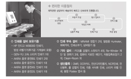 µÎµÎÇǾØÇÇ(´ëÇ¥ ÀÌ»ó¹ü)´Â 1,300Æò ±Ô¸ðÀÇ °øÀåÀ» °æ±âµµ ȼº¿¡ ¼³¸³ ÈÄ, ºñÁö³×½ºÆû Àμ⠼³ºñ¿Í ½ºÆ¼Ä¿¶óº§±â°è ¹× °¡°ø¼³ºñ¸¦ °®Ãß¾úÀ¸¸ç, Á¾ÀÌ Àç´ÜÀ» À§ÇÑ ¸®¿ÍÀδõ ¹× ų·Îƾ Àç´Ü¼³ºñ¸¦ °®Ãá ä Æ÷Àå»ê¾÷ÀÇ ¹Ì·¡¸¦ À§ÇØ °Å½ÃÀûÀÎ ¾È¸ñ°ú Àü¹®¼ºÀ» °¡Áö°í »õ·Ó°Ô µµ¾àÇϱâ À§ÇÑ ¡°°í°´¸¸Á·, µµÀüÇϴ âÁ¶Á¤½Å, »îÀÇ Áú Çâ»ó¡±À̶ó´Â °æ¿µÀ̳äÀ¸·Î ´õ¿í µµ¾àÇϰíÀÚ ÀÓÁ÷¿ø Àϵ¿ÀÌ ¿À´Ã ÀÌ ½Ã°£¿¡µµ ÇöÀå¿¡¼ ¿ÀǸ¦ ´ÙÇϰí ÀÖ´Ù. ¶ÇÇÑ, µÎµÎÇǾØÇǰ¡ À̹ø¿¡ »õ·Ó°Ô ¼±º¸ÀÎ µðÁöÅÐ Àμâ½Ã½ºÅÛÀº ÀμâÀÇ ¸ðµç °ÍÀ» ºü¸£°í, ½Å¼ÓÇÏ°Ô »ý»êÇÏ´Â »õ·Î¿î ºÐ¾ßÀÇ ½ºÆ¼Ä¿, ¶óº§ Àμâ½Ã½ºÅÛÀ̸ç ÀμâÆÇ(CTP)À̳ª º°µµÀÇ °øÁ¤ ¾øÀ̵µ ¹Ù·Î ÀμⰡ °¡´É, °í°´ÀÌ °í¹ÎÇÏ´Â ±î´Ù·Ó°í º¹ÀâÇÑ ´Ù°øÁ¤ Ư¼ö ½ºÆ¼Ä¿, ¶óº§µµ ÃÖ»óÀÇ Ç°Áú·Î½á Á¦ÀÛÀÌ °¡´ÉÇϴٴ Ư¡ÀÌ ÀÖ´Ù. ( ¹®ÀÇ : www..doodoopnp.co.kr )