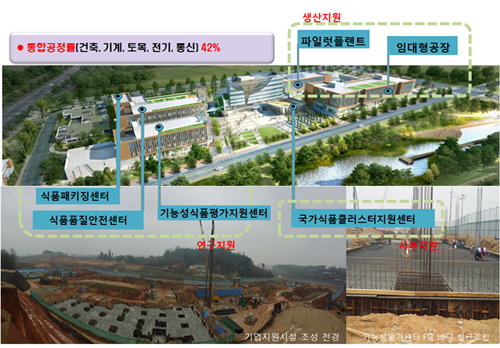 ÇÑÆí, ±â´É¼ºÆò°¡¼¾ÅÍ, ǰÁú¾ÈÀü¼¾ÅÍ, ÆÐŰ¡¼¾ÅÍ µî ±¹°¡½ÄǰŬ·¯½ºÅÍ ±â¾÷Áö¿ø½Ã¼³ °ÇÃà°ø»ç´Â 4¿ù ÇöÀç ÅëÇÕ °øÁ¤À²ÀÌ ¾à 42%ÀÌ¸ç ¿ÃÇØ ¸»±îÁö ³»ºÎ°ø»ç´Â 75%, ¿ÜºÎ°ø»ç´Â ¸ðµÎ ¿Ï·áµÉ ¿¹Á¤À̸ç, 2016³â 6¿ù ¸» ¿Ï°øÀ» ¸ñÇ¥·Î °ø»ç°¡ Â÷Áú¾øÀÌ ÃßÁøµÇ°í ÀÖ´Ù.
