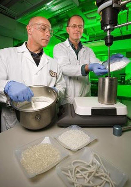 Glenn°úÀÇ °øµ¿ ¿¬±¸¸¦ ÅëÇØ »õ·Î¿î ģȯ°æ Æ÷ÀåÀ縦 °³¹ßÇÑ °øµ¿ ¹ß¸íÀÚÀÎ Simon K. HodsonÀº 2°¡ÁöÀÇ Çõ½ÅÀûÀÎ ±â¼úÀ» °³¹ßÇß´Ù. µÎ °¡Áö Á¢±Ù ¹æ¹ýÀº Æú¸®½ºÆ¼·» Æû Á¦Ç°°ú À¯»çÇÏ°Ô º¸ÀÌ´Â °Çϰí, ³»±¸¼ºÀÌ ÀÖÀ¸¸ç ´Ù¸ñÀûÀÎ ¹ÙÀÌ¿À Æû(biofoam)À» ±¸ÇöÇÒ ¼ö ÀÖ°Ô ÇØÁÖ¾ú´Ù.