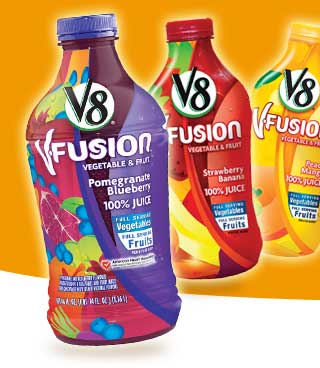 Ä·º§ ¼öÇÁ(Campbell Soup)ÀÇ ¡®V8 V-Ç»Àü(Fusion)¡¯Àº 100 % ¾ßä¿Í °úÀÏ ÁÖ½º¸¦ È¥ÇÕÇÑ °Ç° ÁÖ½ºÀÌ´Ù.