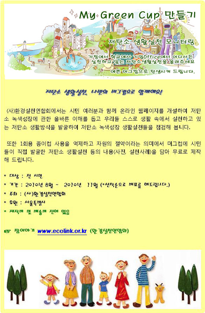ȯ°æ½Çõ¿¬ÇÕȸ(International Environment Action Association(IEAA), ÀÌÇÏ È¯½Ç·Ã, ȸÀå À̰æÀ²)°¡ Àúź¼Ò »ýȰ¹æ½ÄÀ» Á¤Âø½Ã۱â À§ÇÑ Àúź¼Ò »ýȰ½Çõ ¸ð´ÏÅ͸µ ¡®My Green Cup¸¸µé±â¡¯ Ä·ÆäÀÎÀ» ÁøÇàÇÑ´Ù.
