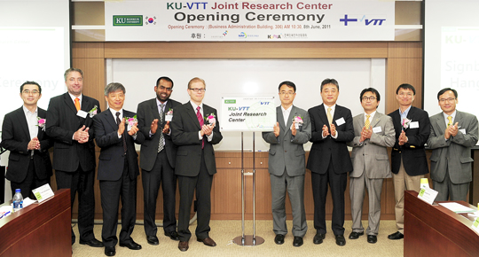°Ç±¹´ë(ÃÑÀå ±èÁø±Ô)´Â Áö³ 6¿ù 8ÀÏ ±³À°°úÇбâ¼úºÎÀÇ ÇØ¿Ü¿ì¼ö¿¬±¸±â°üÀ¯Ä¡»ç¾÷ÀÇ Áö¿øÀ» ¹Þ¾Æ ¼¼°èÀû ¿¬±¸¼ÒÀÎ Çɶõµå VTT(Valtion Teknillinen Tutkimus keskus, Çɶõµå ±¹°¡±â¼ú¿¬±¸¼¾ÅÍ)¿Í Â÷¼¼´ë µð½ºÇ÷¹ÀÌ¿¡ ¾²ÀÌ´Â ÀμâÀüÀÚ À¶ÇÕ±â¼úÀ» °øµ¿ ¿¬±¸ÇÏ´Â ¡®°Ç±¹´ë-VTT °øµ¿¿¬±¸¼¾ÅÍ¡¯(¼¾ÅÍÀå °í¼º¸² ±³¼ö)(KU-VTT Joint Research Center) °³¼Ò½ÄÀ» °³ÃÖÇß´Ù.