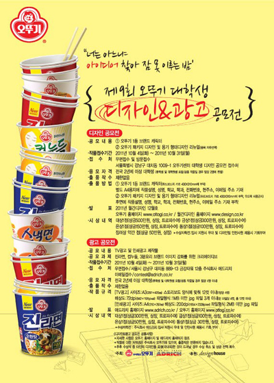 µðÀÚÀÎ °ø¸ðÀüÀº ¿À¶Ñ±âÀÇ 1µî ºê·£µå ij¸¯Åͳª ¿À¶Ñ±â ÆÐŰÁö µðÀÚÀÎ ¹× ¿ë±â ÇüÅ µðÀÚÀÎÀ» ¸®´º¾óÇØ ÃâǰÇÏ¸é µÇ°í, ±¤°í °ø¸ðÀüÀº ¡®Áø¶ó¸é¡¯, ¡®ÄÅ´©µé¡¯, ¡®3ºÐ¿ä¸®¡¯ ºê·£µåÀÇ À̹ÌÁö °È¸¦ À§ÇÑ Å©¸®¿¡ÀÌÆ¼ºê·Î TV±¤°í ¹× ÀμⱤ°í Á¦ÀÛ¹°À» ÃâǰÇÏ¸é µÈ´Ù.